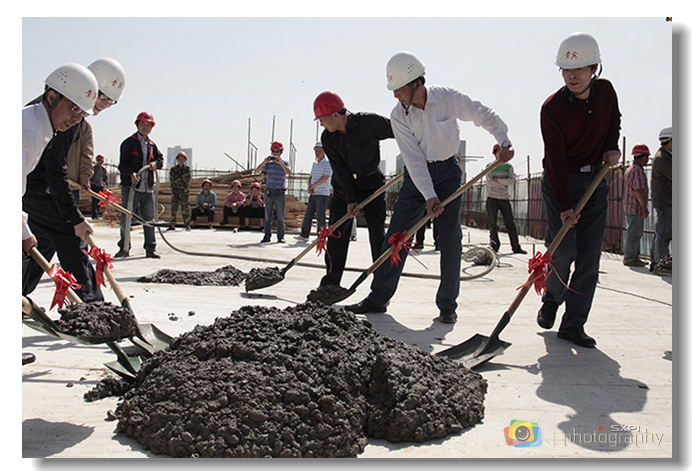 北区5#、6#学生公寓楼封顶仪式在公寓楼顶层举行