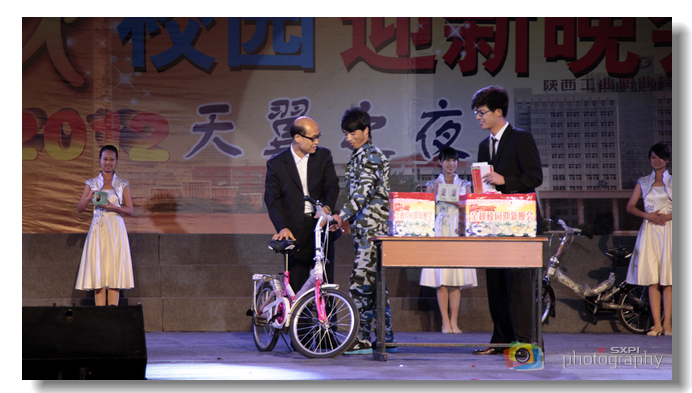 晚会在大学生艺术团管乐团交响合唱《欢迎组曲》中拉开序幕。2012级新同学用歌曲联唱的形式表达了他们喜悦的心情。晚会节目异彩纷呈,感人至深的小品《民工父亲》令在场观众无不动容,诗舞组合《少年中国说》声情并茂、激荡人心,激发了同学们强烈的民族自尊心和责任感。晚会还特邀我省著名青年歌唱家——西安音乐学院刘凯、郭鸾姣老师演唱了《高原蓝》,优美的歌声瞬间征服全场,欢呼声、喝彩声不绝于耳。在幸运抽奖环节,6位新同学有幸获得了由中国电信股份有限公司咸阳分公司提供的自行车和手机大奖。舞蹈、武术、街舞的表演更是引人入胜,展示了我院学子的激情与魅力。最后,晚会在《陕西工业职业技术学院校歌》、《走向复兴》嘹亮的歌声中落下帷幕。全场晚会高潮迭起,始终洋溢着欢声笑语。