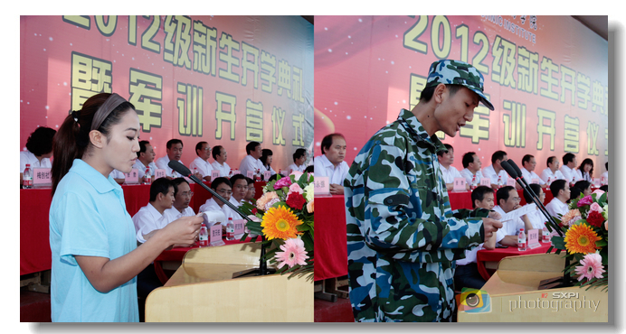 王天哲同志宣布军训编制及任命,在校生和新生代表先后发言。邓志辉同志为2012级新生军训团授旗并宣布2012级新生军训开营。