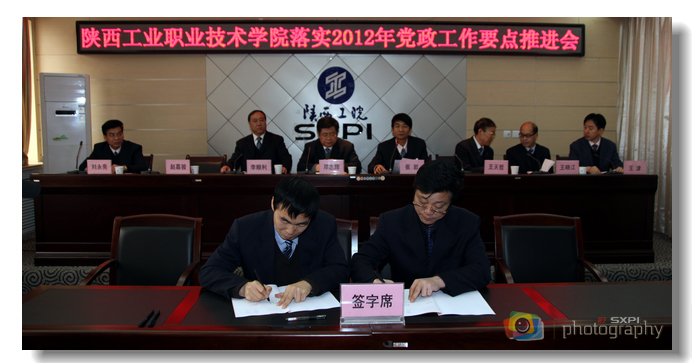 会上,副院长王津同志安排学院教育教学质量提升计划年度工作任务,财务处处长吴忠平同志就2012年财务预算安排情况进行了说明。学院领导还与分管处级单位的负责人签订2012年度工作(经济)目标责任书。