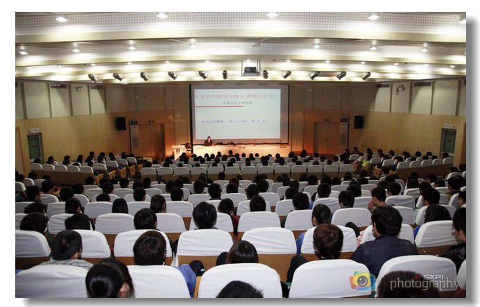 梁星亮教授通过“从中国近代历史进程中认识辛亥革命的地位”、“中国社会进步中评价辛亥革命的作用”以及“在中国社会发展中继承辛亥革命的遗产”三个方面,全景式再现了100年前那场震惊中外的辛亥革命,使现场听众全面了解了以孙中山先生为代表的革命先驱,为推动中华民族摆脱封建专制统治和外国列强侵略,跻身世界先进行列而做的可歌可泣的英勇斗争。报告在深刻阐述辛亥革命的历史地位和价值的同时,也充分论证了这场革命对当代中国发展的现实启示,教导当代大学生应该继承和发扬以“救国救民的爱国精神”、“与时俱进的求实精神”、“愈挫愈勇的奋斗精神”、“亲民爱民的公仆精神”为特征的“辛亥精神”,为中华民族的伟大复兴贡献力量。