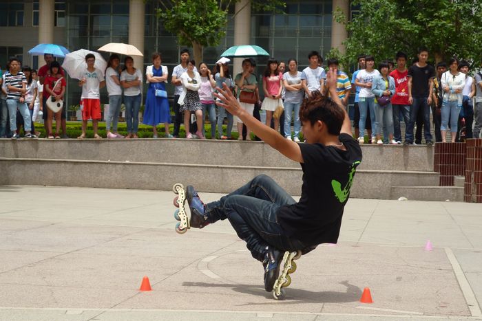 轮滑(Roller skating),又称滚轴溜冰、滑旱冰,是穿着带滚轮的特制鞋在坚硬的场地上滑行的运动。大学生轮滑大赛给轮滑爱好者提供了一个互相交流,展现自我的平台,让更多的人了解轮滑、喜爱轮滑、参与轮滑。