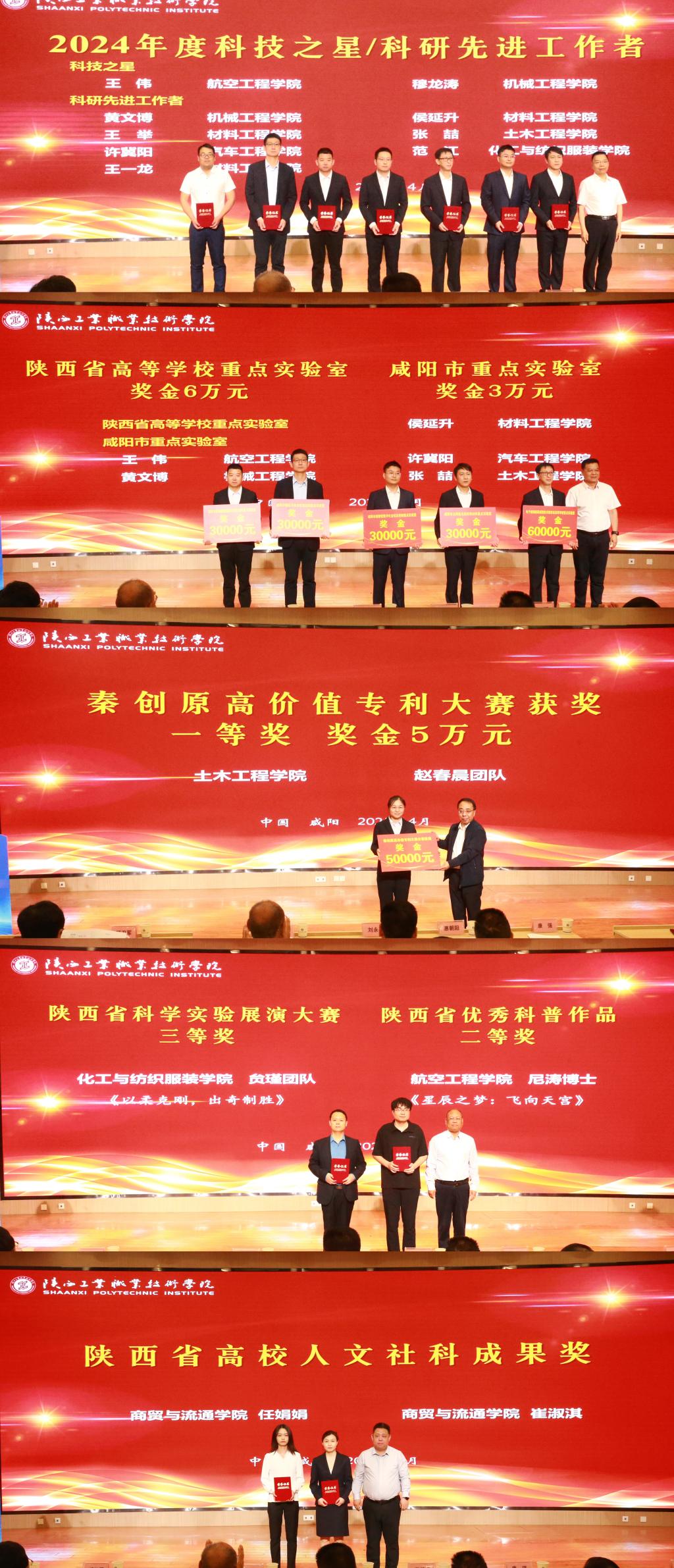 接着,对ac米兰2024年度科技之星和科研先进工作者、获批立项的陕西省高校重点实验室和咸阳市重点实验室负责人、秦创原高价值专利大赛获奖团队、陕西省科学实验展演大赛获奖团队、陕西省优秀科普作品获得者及陕西省高校人文社科成果奖获得者分别进行表彰。