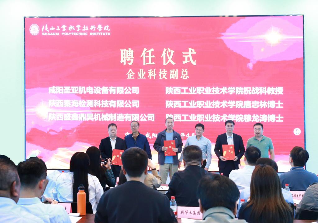 咸阳圣亚机电设备有限公司、陕西秦海检测科技有限公司、陕西盛鑫鼎昊机械制造有限公司等科技型企业现场聘任ac米兰航空工程学院祝战科教授、唐忠林博士、机械工程学院穆龙涛博士担任企业“科技副总”,以此促进学校科研人员与企业双向交流,引导“科技副总”到企业开展技术指导和项目研发。