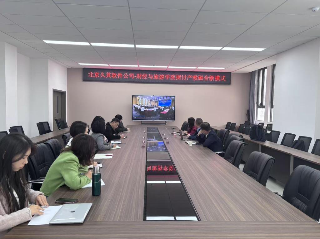 为探索产教融合的新模式与新路径,3月26日,财经与旅游学院与北京久其软件股份有限公司在崇理楼D504进行了深入的交流与探讨。北京久其软件研究院院长芦星、西北区域总经理白望朝、高级业务咨询顾问靳晓翠和财经与旅游学院院长何奇彦、教学办主任仝丹娜、会计教研室主任杨红等主要人员参加了会议。会议由财经与旅游学院院长何奇彦主持。