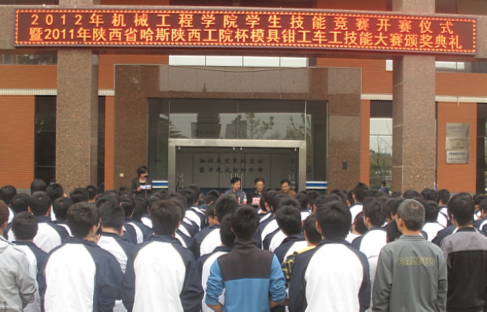 4月6日下午,2012年机械工程学院学生技能竞赛开幕仪式暨2011年陕西省哈斯陕西工院杯模具钳工车工技能大赛颁奖典礼在行知楼前隆重举行。