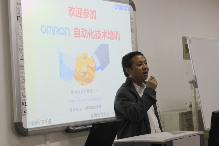 近日,我院特邀欧姆龙自动化(中国)有限公司客户中心工程师何丽为电气学院全体教师做关于欧姆龙新产品、新技术的培训,培训会在我院行知楼四楼欧姆龙实训中心顺利进行。