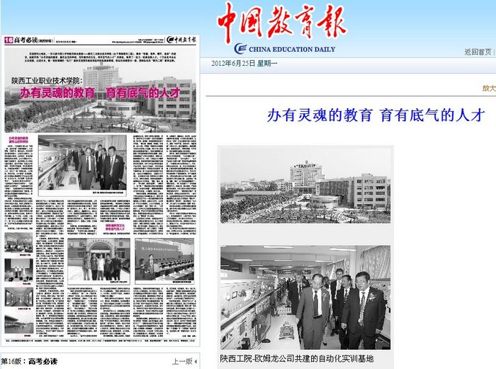 6月24日,《陕西日报》第六版以《七个“一流”凸显订单培养特色,校企合作培育国际水准企业员工》为题,报道我院携手欧姆龙公司实施人才订单培养的办学历程。