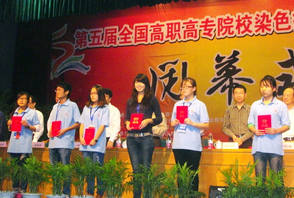 10月25至27日,“第五届全国高职高专院校染色打样学生技能大赛”在浙江工业职业技术学院举行,我院五名参赛学生全部获奖,共获得二等奖1项、三等奖3项和优秀奖1项。