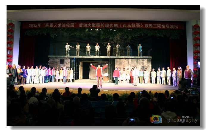 11月7日晚,2012年“高雅艺术进校园”活动大型秦腔现代剧《西京故事》专场演出在我院明德堂举行,省教育厅体卫艺处副处长王彬武、学院领导王天哲、赵嘉骏、王晓江和我院1200余名师生一同观看了演出。