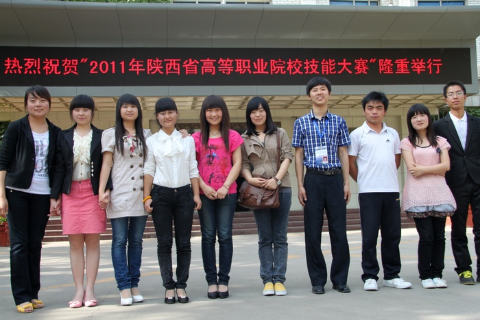 5月15日,在我院教师郑琳靖、赵雨、阮亚莉、来耀兵、赵金柱等带领下,10名学生在西安参加了“2011年陕西省高职院校技能大赛英语口语赛项”,我院王丹同学摘取专业组桂冠,张娜、赵虎同学获得专业组三等奖。