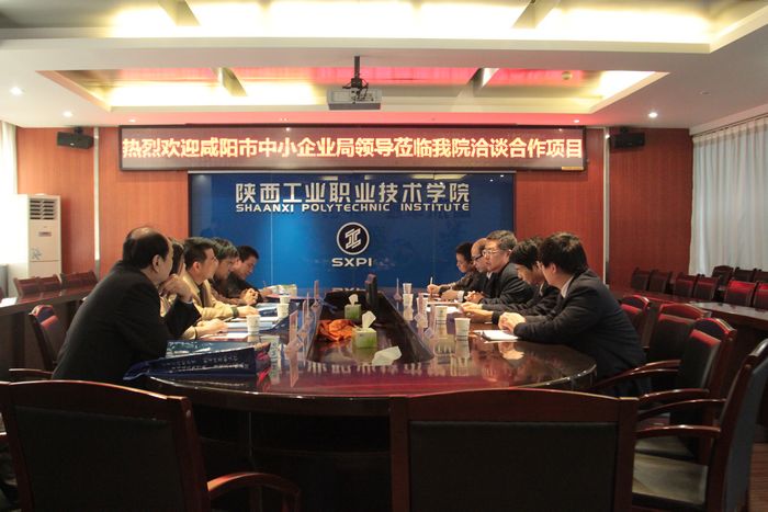 3月8日,咸阳市中小企业促进局党组书记、局长王旭一行5人莅临我院洽谈合作项目。