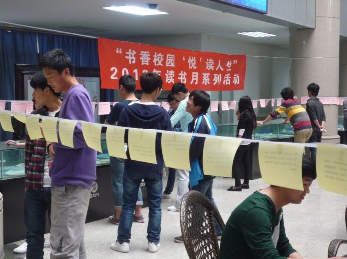 4月18日下午,2013年“书香校园‘悦’读人生”读书月系列活动之“越答题越精彩”有奖答题活动在图书馆一层大厅举行。