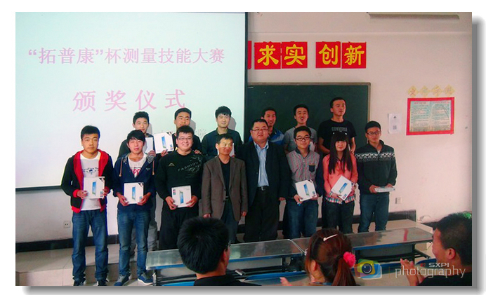4月24日中午,土木工程学院“拓普康杯”测量技能大赛颁奖仪式在崇文东楼举行,陕西拓普康商贸有限公司总经理党洋和土木学院院长贺天柱共同为比赛获奖选手颁发了证书及奖品,土木学院副院长杨谦主持颁奖仪式。