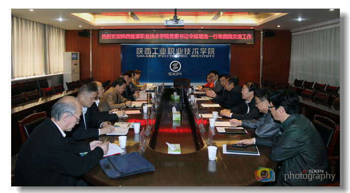 4月24日上午,陕西能源职业技术学院党委书记令狐培选、党委副书记兼副院长何从军与该院党委办公室、组织宣传部、学生工作部、武装部、机电工程系、地质测量系等部门负责人一行莅临我院交流工作。