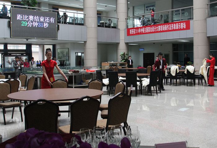 4月25日,2014年陕西省高等职业院校技能大赛“中餐主题宴会设计”赛项在我院工商管理学院酒店管理实训基地举行。
