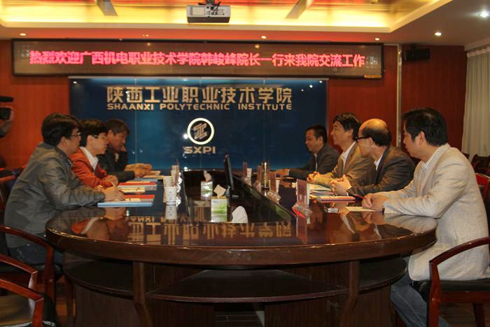 4月28日上午,广西机电职业技术学院韩峻峰院长一行4人来我院交流工作。