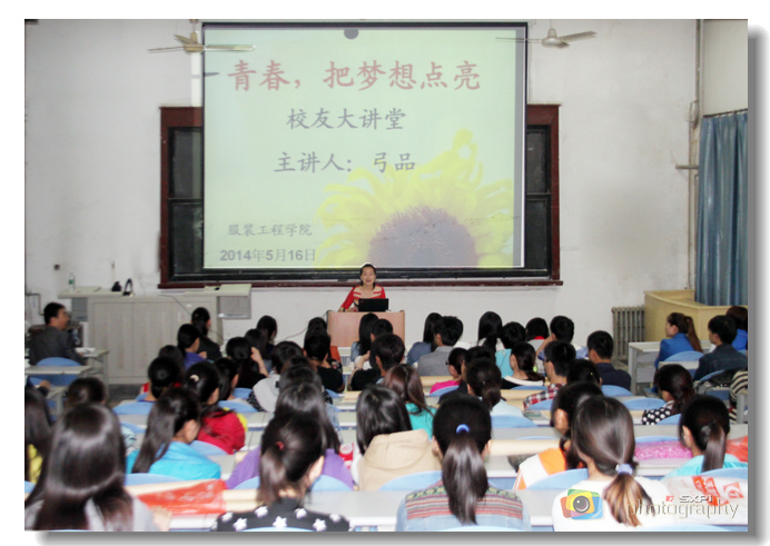 5月16日下午,我院优秀校友、西安靓点商贸公司培训学院主管弓品做客校友讲堂,为服装工程学院2014级自主招考新生做了题为《青春,把梦想点亮 》的报告。