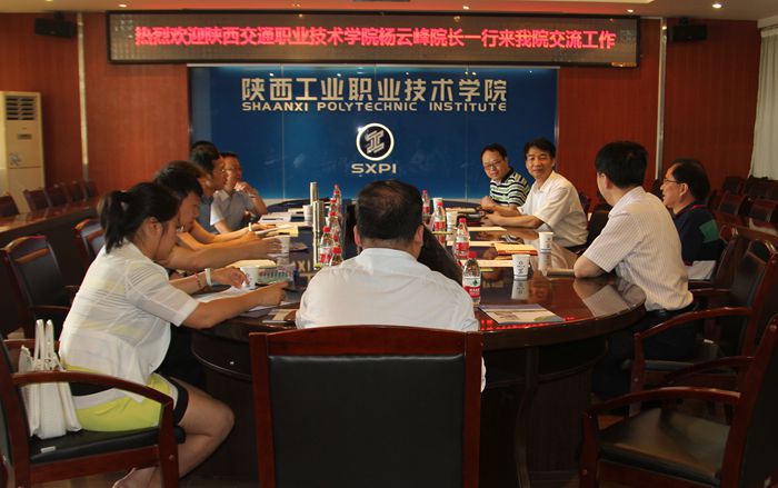 6月4日上午,陕西交通职业技术学院杨云峰院长一行7人来我院交流工作,我院院长崔岩、副院长王津、党政办公室主任朱忠军、示范建设办公室主任王兆奇与来宾在崇文楼9楼会议室进行了座谈。
