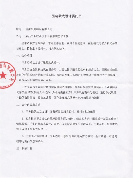 ——服装艺术学院“服装设计制版工作室”对外技术服务初显成果 “陕西工院服装艺术学院:由贵院学生完成的第一批共26款服装款式设计图,经我公司相关部门审议,决定初步选用其中的17款,投入生产并做市场推广”。
