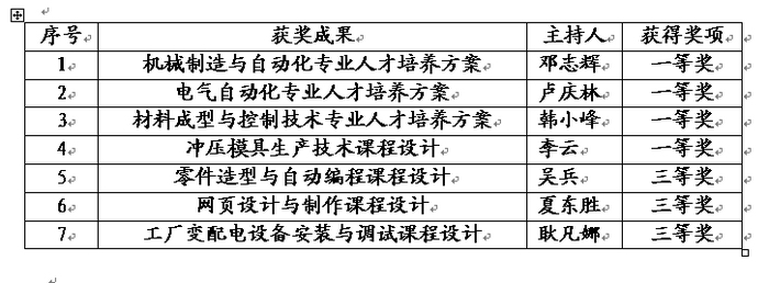 近日,2011年度全国机械高等职业教育教学成果奖评选结果揭晓,我院喜获一等奖4项、三等奖3项。