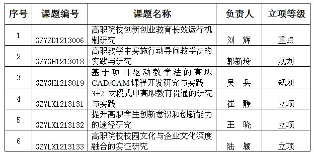近日,依据中国高等职业技术教育研究会《关于下发中国高等职业技术教育研究会2012-2013年度课题立项的通知》(高职研【2013】17号)文件,我院申报的10项课题,经研究会学术委员会组织评审,有6项获准立项,其中重点...