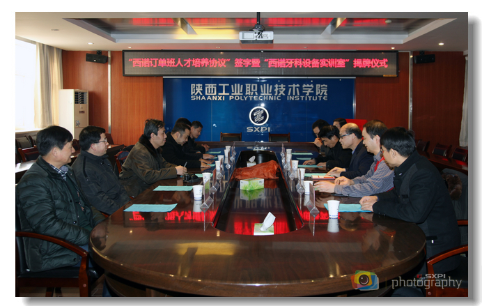 1月2日下午,我院与西北医疗器械(集团)有限公司“西诺”订单班人才培养协议签字暨“西诺牙科设备实训室”揭牌仪式在崇文南楼第一会议室举行。